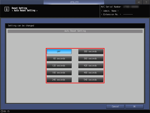 Use this setting to specify the period of time to elapse before Auto Reset is activated.