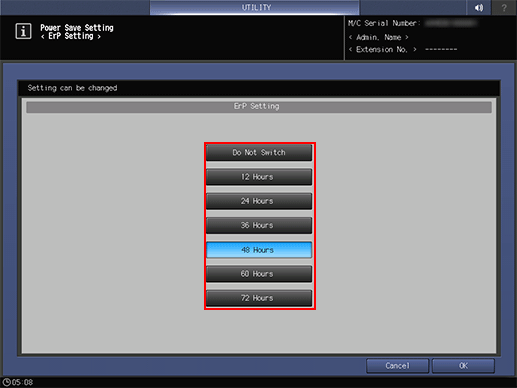 Select the period of time after which the ErP Setting function is activated. Select Do Not Switch to deactivate the ErP Setting function.