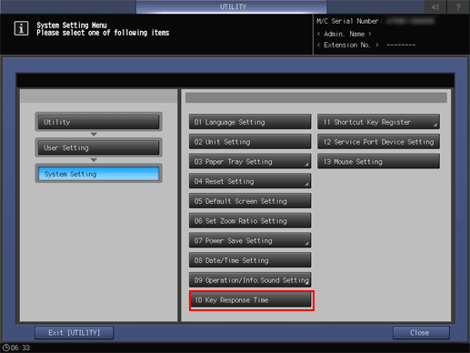 Press System Setting on the User Setting Menu screen, and then press Key Response Time.