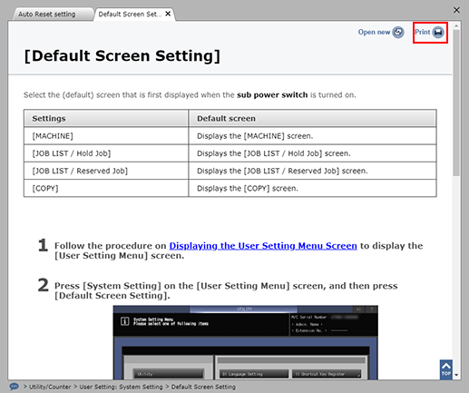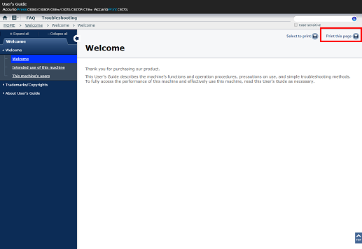 Clicking Print this page on the upper right of the screen prints the displayed page.