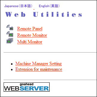 Web Utilities is a utility for device management that has been built in this machine. This utility allows using a web browser from a computer on a network to remotely control the main control panel or monitor the machine status.
