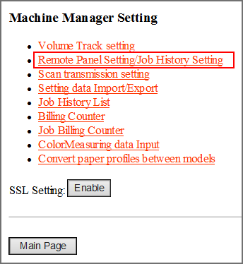 The Remote Panel Setting/Job History Setting screen is displayed.