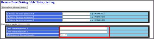 The Remote Panel Setting/Job History Setting screen is displayed.