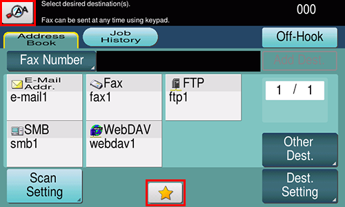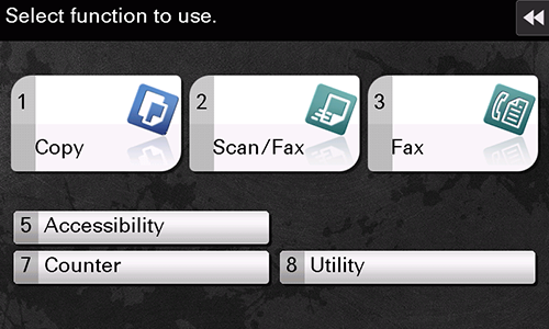 [Fax] | Displays the main screen in fax mode. The fax mode only provides fax functions of the functions that are available in the scan/fax mode. This mode enables you to quickly recall the target function when using a fax. The fax mode has the following features.