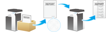 A text such as "PLEASE REPLY" or "DO NOT COPY" is printed on the first page or all pages. You can select the text to be added from the registered fix stamps and arbitrary registered stamps.