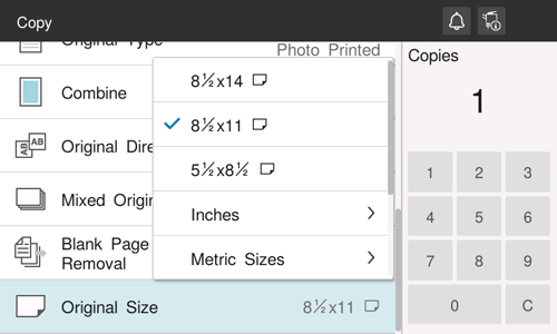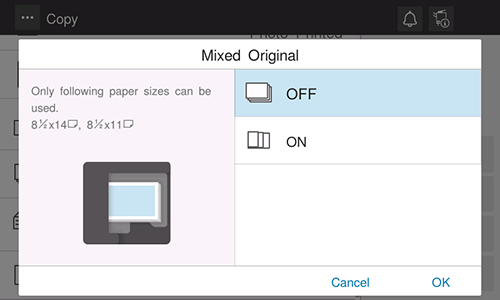 When an original consists of multiple pages of different sizes, the pages can be scanned at one time by using the ADF if they have the same width in the inch size.