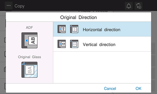 When scanning a 2-sided original, specify the original loading direction so that the vertical direction of the scanned original is set correctly.