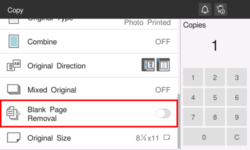 When [Blank Page Removal] is specified to scan an original including blank pages using the ADF, blank pages are excluded from scan targets. Blank pages detected are not counted as original pages.