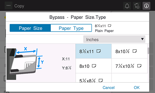 [Auto Detect]: Automatically detects the size of the loaded paper (only for the optional Paper Feed Unit).