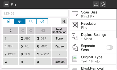) displays a list of destinations registered on this machine. Switch the display using an index, and specify the target destination. For details, refer to Using Address Book.