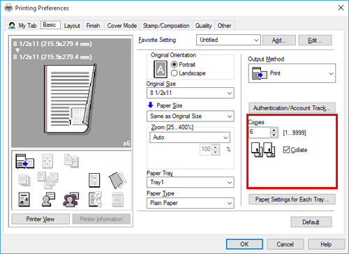 In [Copies] in the [Basic] tab, specify the number of copies you want to print.