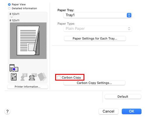 [Carbon Copy Tray] | Select the paper tray for carbon copies. Select the check boxes for all paper trays to be used. |