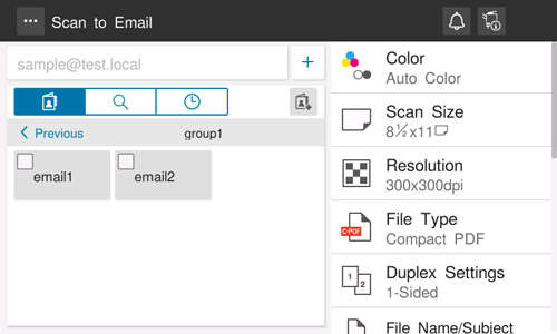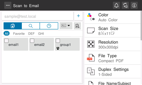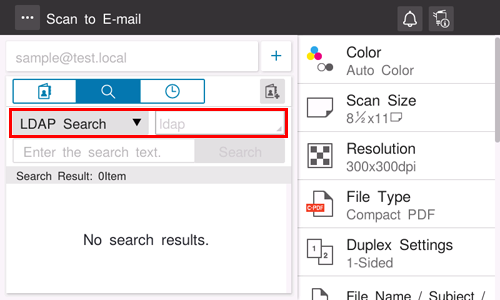 Scan > Sending Original Data as an E-mail Attachment (Scan to E-mail) > How to Use Scan to E-mail > Specifying a Destination