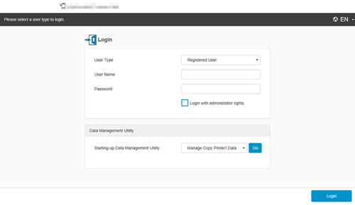 | | Log in as the registered user when user authentication is enabled. In this mode, you can perform settings and operations for registered users. |
