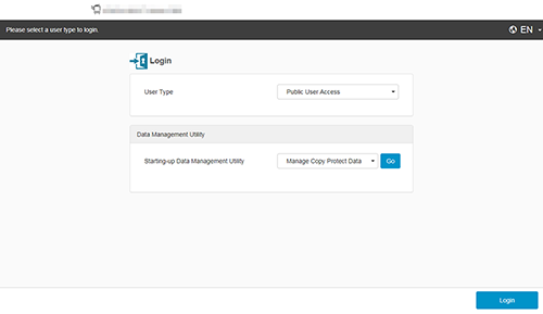 | Log in as a general user, which is not registered in this machine, when user authentication is enabled. This is available when Public User is enabled. In this mode, you can perform settings and operations for public users. |