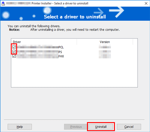 Select the printer driver you want to delete, then click [Uninstall].