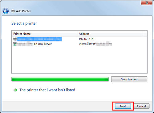 In the window showing the detected printer, click [The printer that I want isn't listed].
