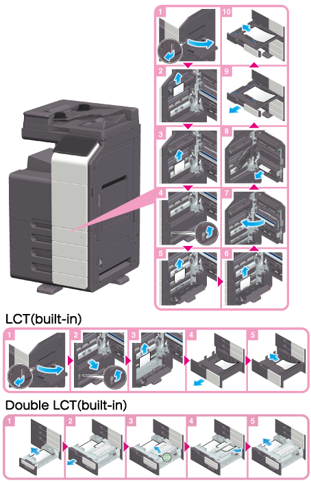 When removing pieces of paper in the paper tray (Tray 1/2)