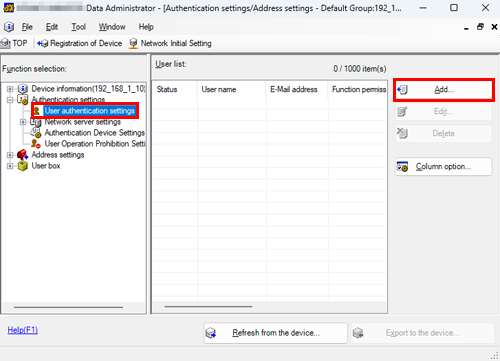 Data Administrator supports the batch copy function. When necessary, you can collectively write the registered authentication information to multiple devices.