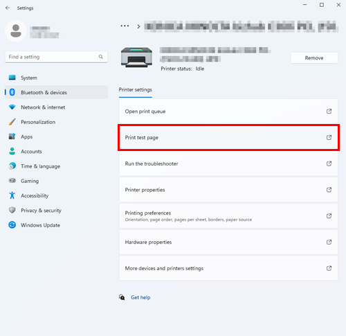 If test printing has failed, resolve the problem using the printer's troubleshooting tool.