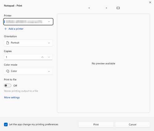 The print settings you have changed here are reset to the defaults when you exit the application software. For information on how to change the default values of print settings, refer to Changing the default print settings.