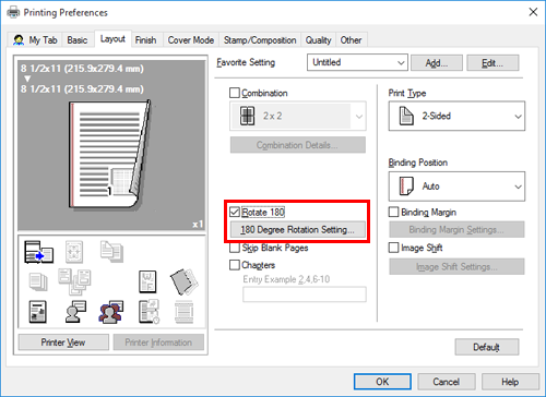 The image is printed upside down. Use this function when printing on envelopes whose loading direction cannot be changed.