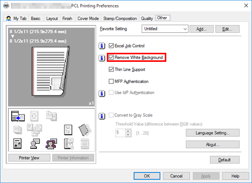 - [Remove White Background] is available only when the printer driver for Windows is used. However, this function is not available when you are using 32-bit application software in the 64-bit operating system.