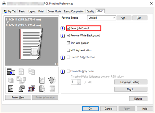 - [Excel Job Control] is available only when the printer driver for Windows is used. However, this function is not available when you are using 32-bit application software in the 64-bit operating system.