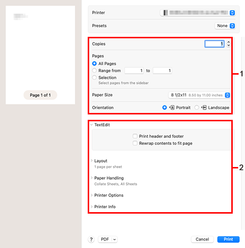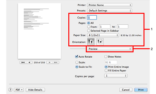 In macOS 10.14/10.15/11/12, if the setting items (1) are not displayed, click [Show Details].
