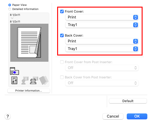If necessary, you can select whether to print the original on the inserted sheets or to leave them blank. When the inserted sheets are printed, the first page of the original is printed on the front cover and the last page of the original is printed on the back cover.