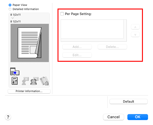 For details, refer to the [Per Page Setting] settings (described after this procedure).