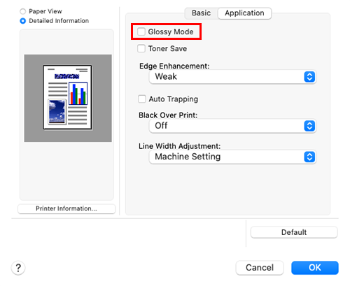 In [Quality] - [Application], select the [Glossy Mode] check box.