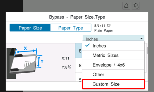 Selecting [Custom Size] from the drop-down list allows you to directly enter and specify the length and width of paper. For details, refer to Specifying the custom size.