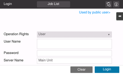 When user authentication is enabled on this machine, the login screen is displayed. Enter the user name and the password, and perform user authentication.