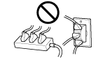 Do not use a multiple outlet adapter to connect any other appliances or machines. Use of a power outlet for more than the marked current value could result in a fire or electrical shock. | ![]() |