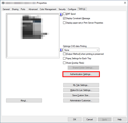 In the [Settings] tab, click [Authentication Settings...].