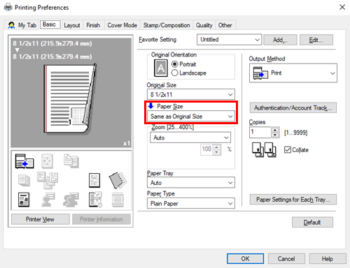Select the paper size from [Paper Size] in the [Basic] tab of the printer driver.