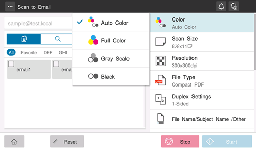 [Auto Color] | Automatically determines [Full Color] or [Gray Scale] to fit the original color when scanning the original. |