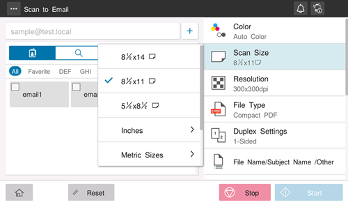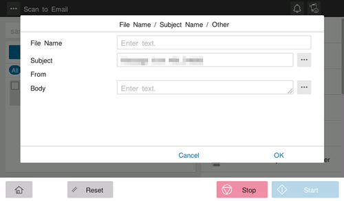 Change the file name of the scanned original. When sending by E-mail, you can specify the subject and text of the E-mail message and change the sender's E-mail address ("From" address).