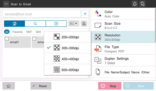 Select a resolution to use to scan the original.