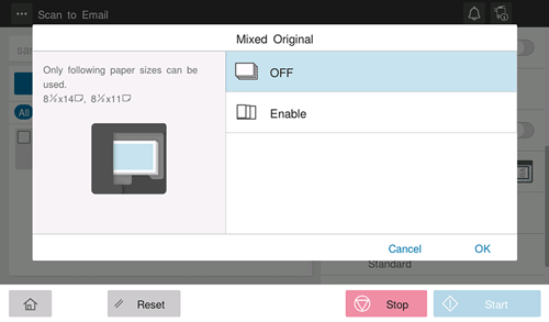When an original consists of multiple pages of different sizes, the pages can be scanned at one time by using the ADF if they have the same width in the inch size.