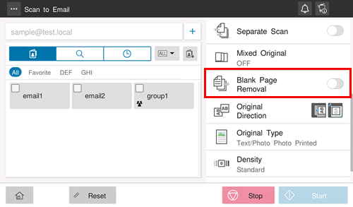 When [Blank Page Removal] is specified to scan an original including blank pages using the ADF, blank pages are excluded from scan targets. Blank pages detected are not counted as original pages.