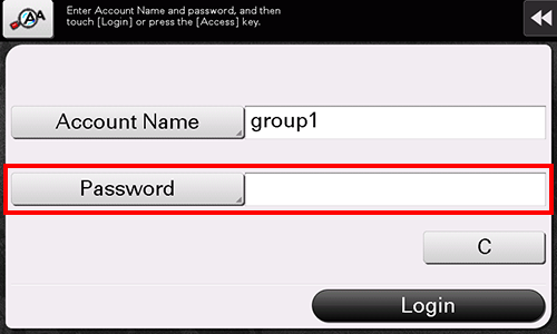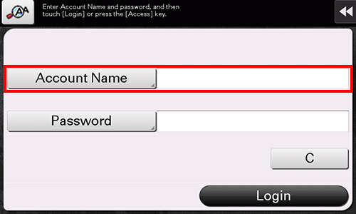 When account track is enabled on this machine, the login screen is displayed. Enter the account name and the password to perform account track.