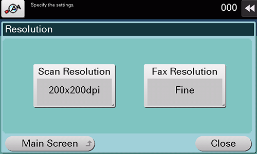 [Scan Resolution] | Select the resolution of the original for scan transmission. When using Scan to E-mail, SMB Send, FTP Send, WebDAV Send, or Save in User Box, select the following resolution to scan an original.