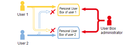 The available User Box operations vary depending on user types. The following shows what different operations are available depending on user types.