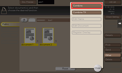 When printing multiple files at the same time, you can combine those files and handle them as a single job. This is called the Combine printing.