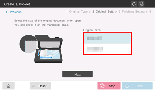 Some finishing sizes cannot be selected depending on the size of the loaded original.