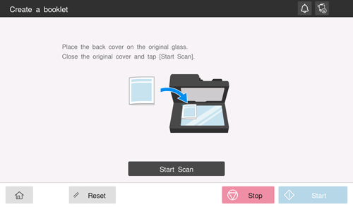 The [Create a booklet] position varies depending on the customization status of the home screen. By default, access from [Useful Apps] on the home screen. For details on [Useful Apps], refer to Accessing all the function keys.