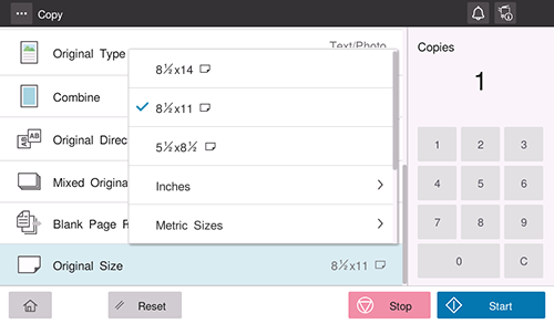 When an original consists of multiple pages of different sizes, the pages can be scanned at one time by using the ADF if they have the same width in the inch size.