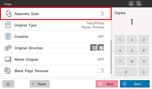 Selecting [Multi-Feed Detection] to ON stops scanning when the machine detects that the original is multiplexed on the ADF.